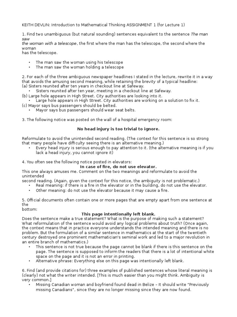 Assignment 1 - Complete.odt | Ambiguity | Teaching Mathematics